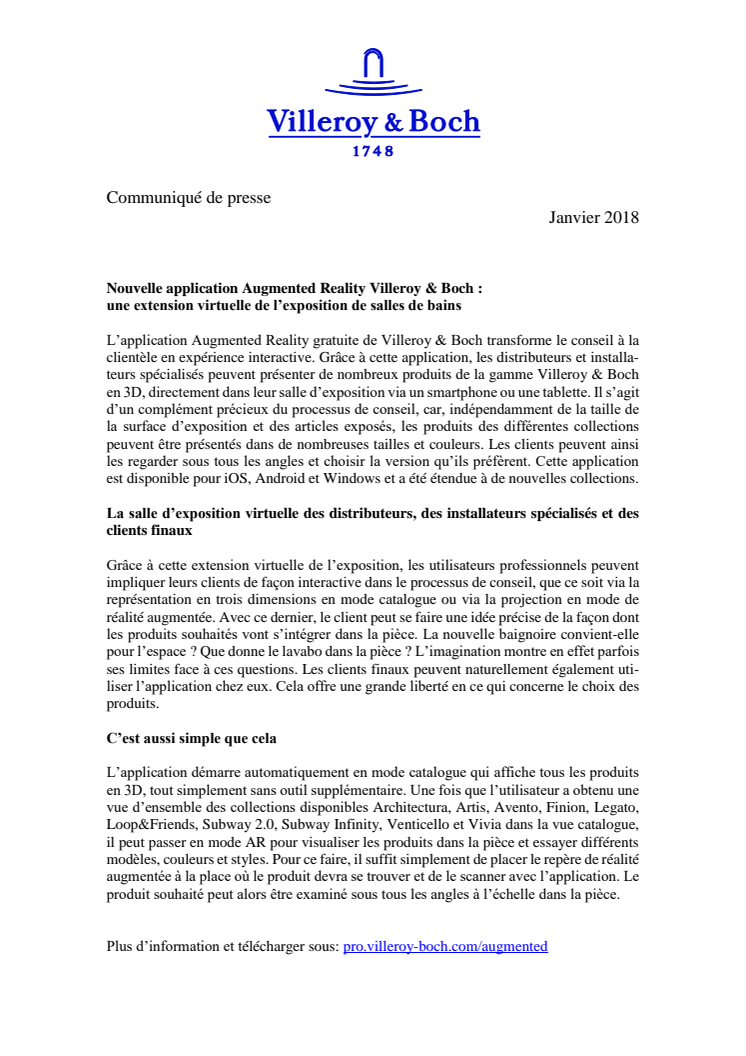 B2B: Nouvelle application Augmented Reality Villeroy & Boch - une extension virtuelle de l’exposition de salles de bains