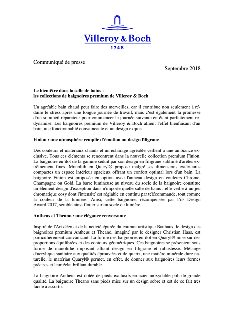 Le bien-être dans la salle de bains - les collections de baignoires premium de Villeroy & Boch